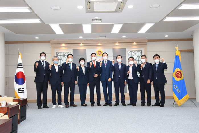 광주시‧전남도의회는 8일 전남도의회에서 광주시의회 김용집 의장, 조석호‧정순애 1,2부의장, 정무창 의회운영위원장, 이홍일 행정자치위원장과 전남도의회 김한종 의장, 구복규‧김성일 1,2부의장, 전경선 의회운영위원장, 박문옥 기획행정위원장 등이 참여하는 간담회를 개최했다.