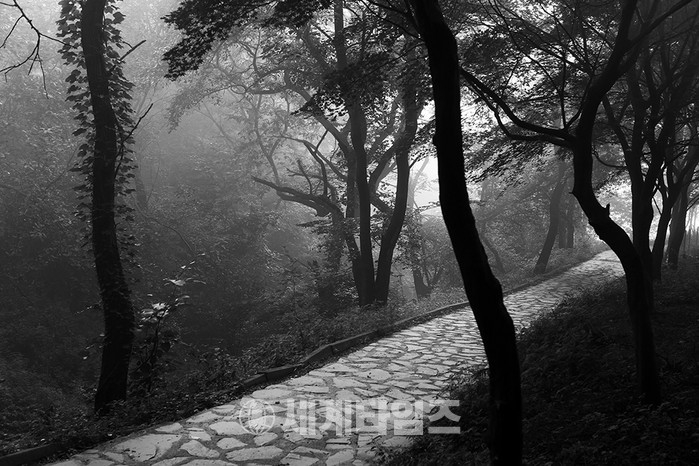 2부 성곽의 숨결 최중욱 사진가의 경험과 철학, 내공은 흑백사진의 질감과 톤으로 오래된 돌의 무게감에 역사성과 영원성을 담고 있다. 산성에서 떠올려지는 군사적 긴장감도 성곽의 숨결은 편안한 느낌으로 스며들어 자연과 성곽이 잘 어울리며 상생을 하고 있다.