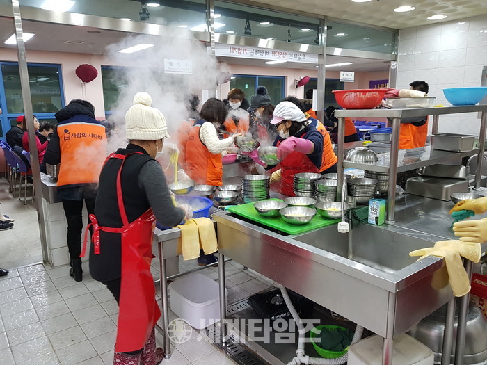 이날 봉사에는 나눔봉사단 유희자 단장을 비롯해서 회원 30명이 추운날씨에도 짜장면 봉사를 하였다,