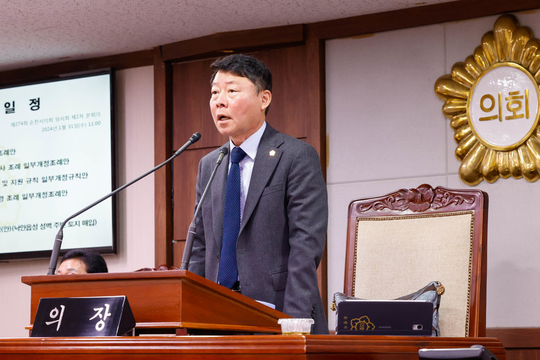 [순천시 세계타임즈=우덕현 기자] 순천시의회(의장 정병회)는 31일 제274회 임시회 제2차 본회의를 열어 의원발의 안건 3건을 포함하여 총 9건의 안건을 심의·의결하고 8일간 진행된 올해 첫 회기 일정을 마무리했다.