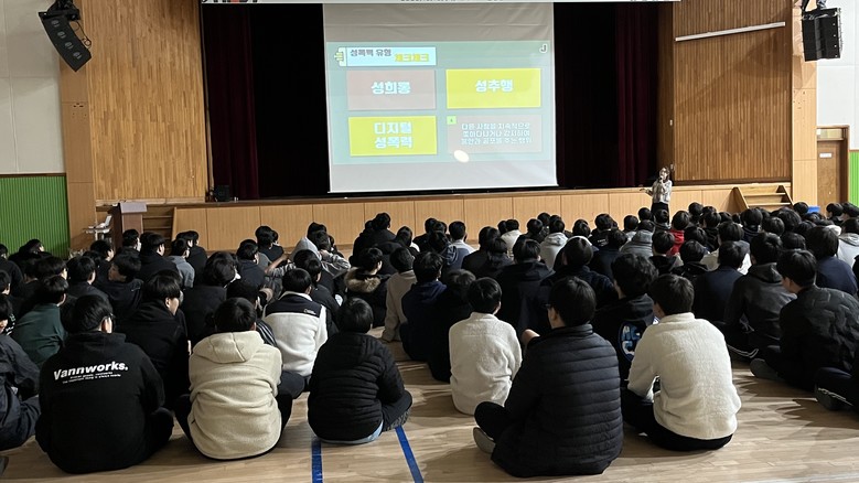 이번 교육은 다움 성교육센터 주희 강사를 초빙해 ‘성폭력은 멀리, 존중은 가까이’라는 주제로 진행했으며 학생들이 성폭력, 성희롱, 스토킹과 같은 다양한 성폭력 유형을 판단하고 사전에 예방할 수 있는 능력을 키우기 위해 실시됐다. 또한 학생들은 또래 성폭력, 디지털 성폭력, 온라인 그루밍과 같은 다양한 사례들과 관련 법률에 대한 학습을 통해 올바른 성인식과 가치판단능력을 높이는 시간이 됐다.