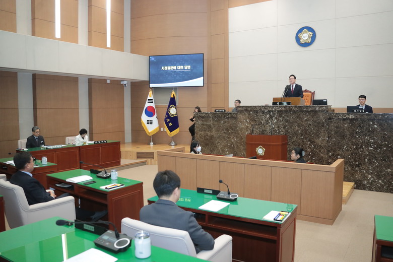 이번 정례회는 이달 1일부터 19일까지 열렸으며, 시민 생활과 밀접한 조례안과 동의안을 비롯한 총 38건의 안건을 심의·의결했다. 특히 지난 18일 열린 제3차 본회의에서는 예산결산특별위원회(위원장 김재국)의 2026년도 일반 및 특별회계 세입·세출 예산안과 2026년도 기금운용계획안에 대한 심사보고가 진행됐다.