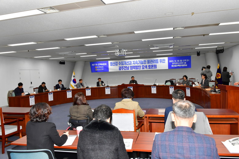 [광주 세계타임즈=손권일 기자] 광주광역시의회가 18일 오후 2시 시의회 5층 예결위 회의실에서 ‘영산강 수질개선과 지속가능한 물관리’를 주제로 정책토론회를 개최했다.