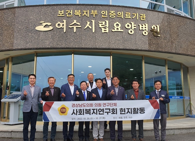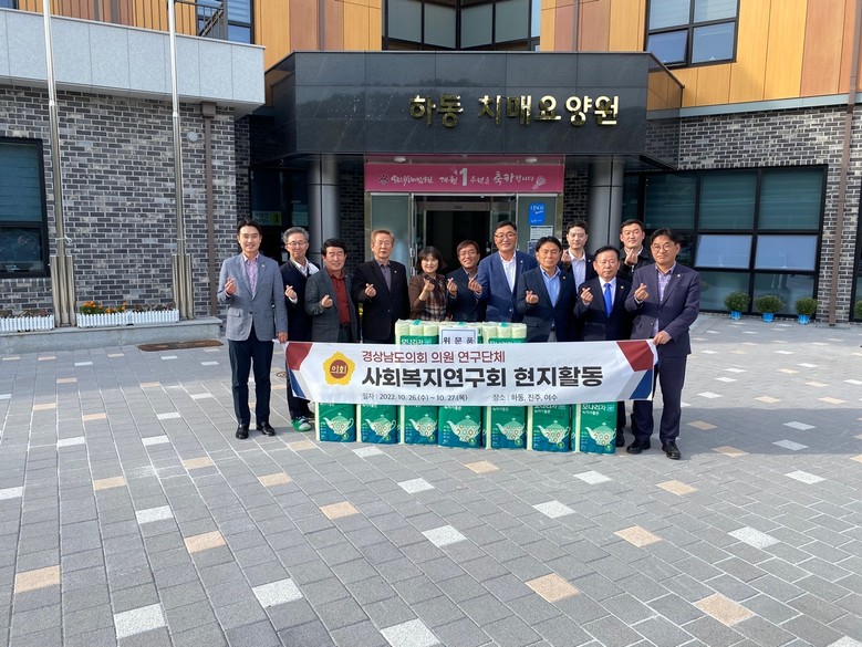 [경남 세계타임즈=최성룡 기자] 경상남도의회 의원 연구단체인 ‘사회복지연구회’(회장 조인제 의원, 이하 “연구회”)는 현지활동 일환으로 지난 10월 26일과 27일 양일간에 걸쳐 알프스하동치매요양원과 진주실버센터를 방문했다고 27일 밝혔다.