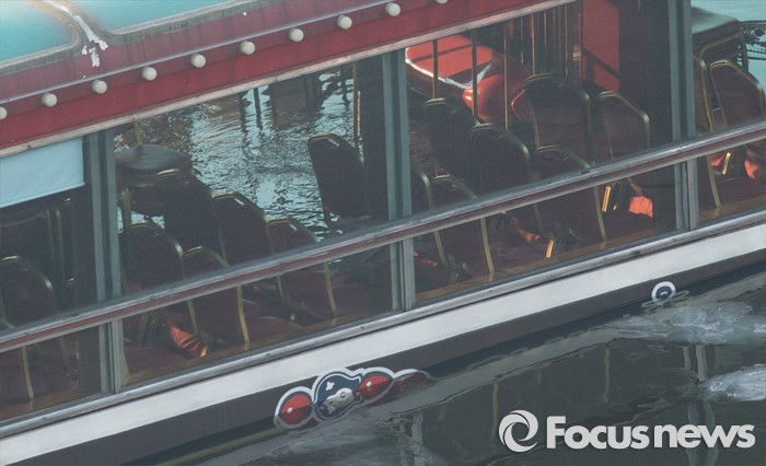 (서울=포커스뉴스) 26일 오후 서울 한강 영동대교 아래에서 침수된 한강유람선 안으로 물이 들어차고 있다.