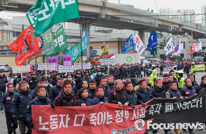 김 위원장은 "오로지 노동자만이 이 위기를 극복할 수 있다"며 "총파업으로 응징할 수 밖에 없다"고 지적했다.