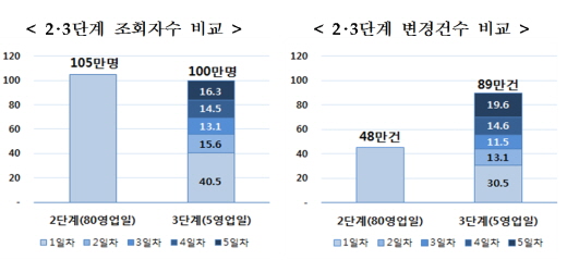 특히, 3단계 시행 첫날 조회는 2단계 전체의 40%(41만명), 변경은 약 67%(31만건) 수준에 이르렀다. 2일차부터는 조회·변경 모두 매영업일 10만명(건) 이상 꾸준하게 이용되면서 첫날을 제외한 4일간 일평균 15만명(건) 수준을 기록하고 있다.