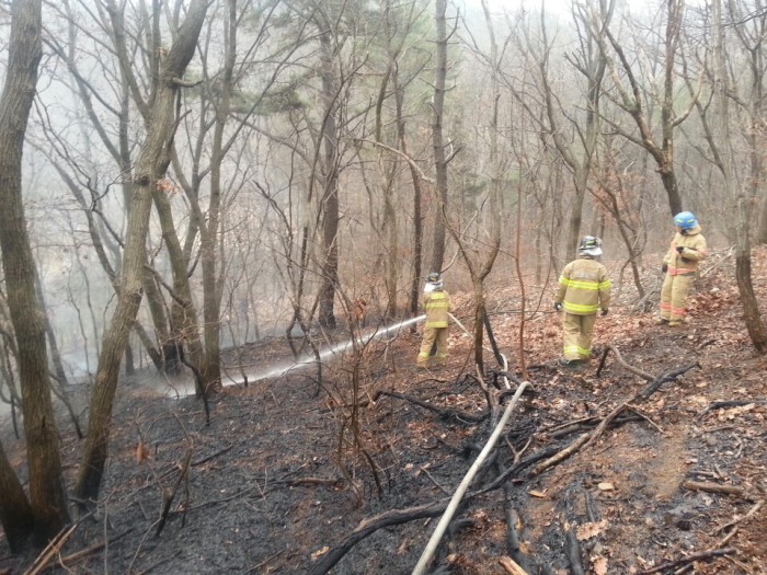 (서울=포커스뉴스) 17일 오후 3시 32분쯤 서울 서초구 원지동 추모공원 인근 야산에서 불이 나 임야 900㎡를 태우고 40분만에 꺼졌다.
