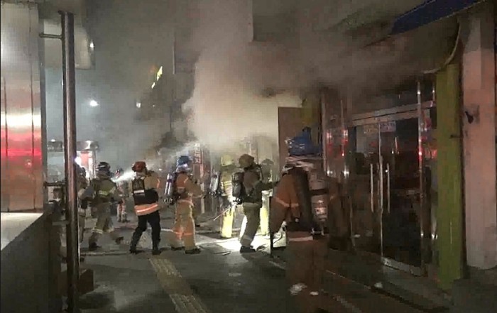 (서울=포커스뉴스) 23일 자정쯤 서울 중구 을지로의 한 인테리어 매장에서 전기합선이 원인으로 추정되는 불이 났다.