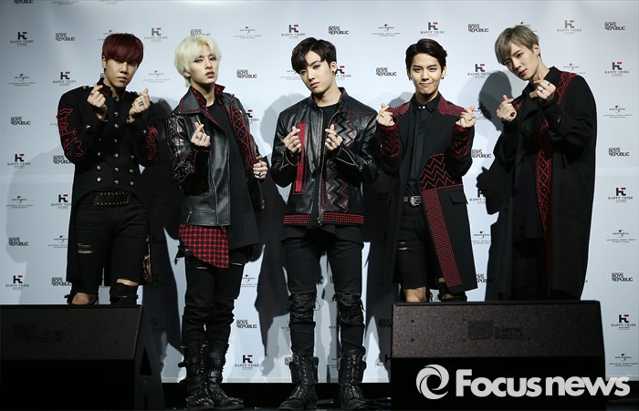 (서울=포커스뉴스) 30일 오후 서울 마포구 예스24 무브홀에서 열린 아이돌그룹 소년공화국의 세번째 미니앨범 [BR: evolution] 발표 쇼케이스에 참석한 멤버들 포토타임을 갖고 있다. 왼쪽부터 원준, 민수, 성준, 수웅, 선우.