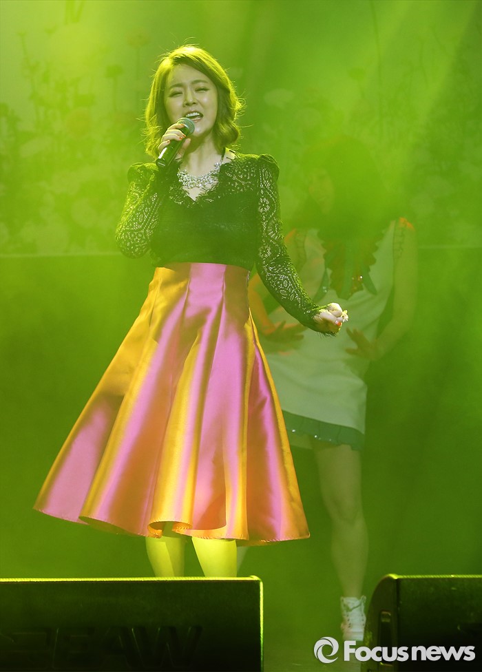 금잔디는 2000년 데뷔 이후 ‘오라버니’, ‘일편단심’ 등 많은 히트곡을 내며 트로트 퀸으로 주목 받고 있는 가수다. 지난해에는 KBS1 일일드라마 ‘가족을 지켜라’ OST에도 참여하며 다방면으로 활동하고 있다.(서울=포커스뉴스) 7일 오후 서울 마포구 하나투어 브이홀에서 가수 금잔디가 정규 3집 앨범 '설렘' 발표 쇼케이스에 참석해 '아저씨 넘버원'의 무대를 선보이고 있다. 2016.04.07 김유근 기자
