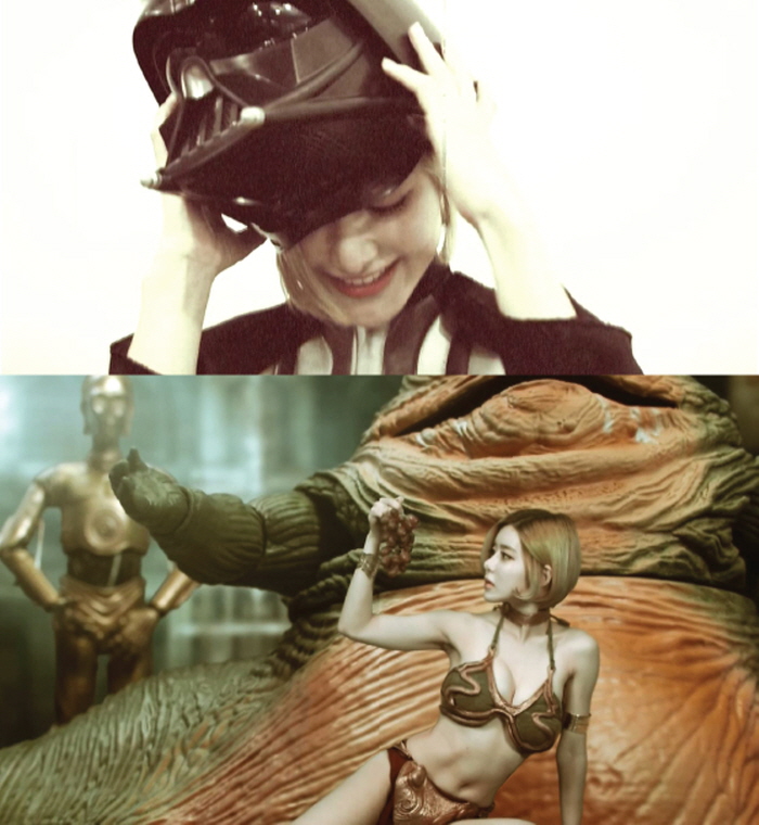 DJ 소다는 이번 영상에서 스타워즈의 주인공 레아 공주와 다스베이더를 코스튬해 재치 있는 영상을 만들어냈다. 특히 레아 공주 코스튬을 한 채 쇠사슬과 포도를 사용한 DJ 소다의 모습은 그녀의 섹시함을 유감없이 드러냈다.