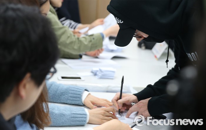 (서울=포커스뉴스) 20대 국회의원 선거일인 13일 오전 서울 용산구 한남초등학교에 마련된 투표소에서 배우 박해진이 투표를 하고 있다.