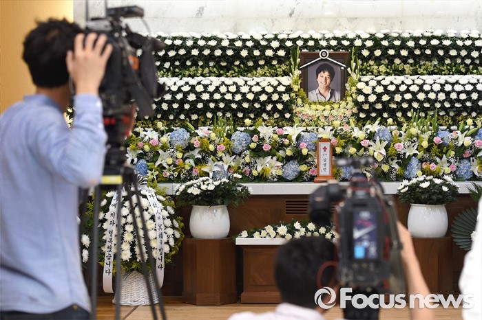 (서울=포커스뉴스) 뇌사 판정을 받고 장기를 기증한 뒤 사망한 배우 故김성민의 빈소가 26일 오후 서울 서초구 가톨릭대학교 성모병원 장례식장에 마련됐다.