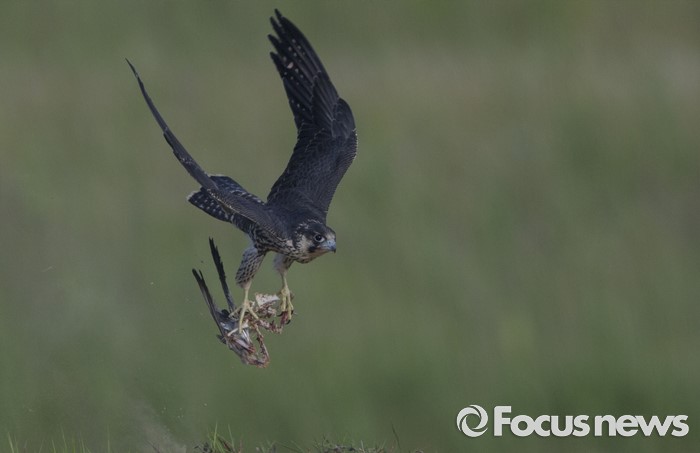어린 송골매들은 하늘 높이 치솟아 연에 매단 먹이를 낚아 챌 뿐더러, 인근의 비둘기나 멧비둘기를 공격하더니, 급기야 6월 중순 날아가는 멧비둘기를 두 마리가 협공하여 첫 사냥에 성공했다.