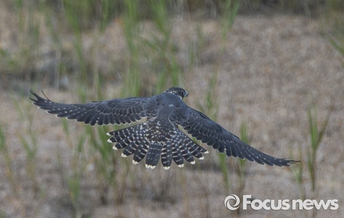 (인천=포커스뉴스) 송골매 유조 수컷이 인천시 수도권 매립지 들녘에서 낮은 곳으로 비행하며 먹잇감을 찾고 있다.