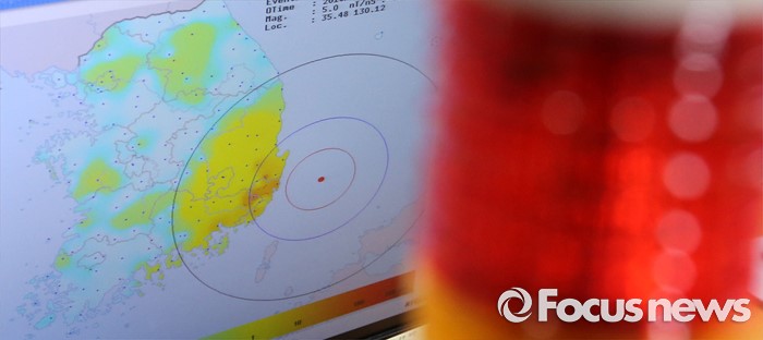(대전=포커스뉴스) 6일 오전 대전 유성구 한국지질자원연구원 지진연구센터에서 모니터에 지반진동 분포가 보이고 있다. 지난 5일 오후 8시 33분께 울산 동구 동쪽 52㎞ 해상에서 규모 5.0의 지진이 발생했다.