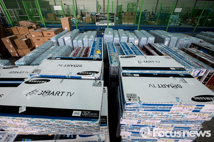 | △ 쌓여있는 해외 직구 TV들 |