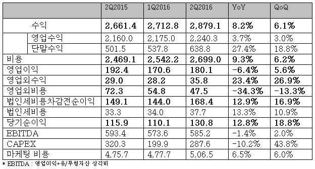 매출은 전년 동기대비 8.2% 증가한 2조8791억원을 달성했다. 영업수익은 유선 및 무선 서비스 수익 증가에 힘입어 전년 대비 3.7% 성장한 2조 2403억 원을 달성했다.