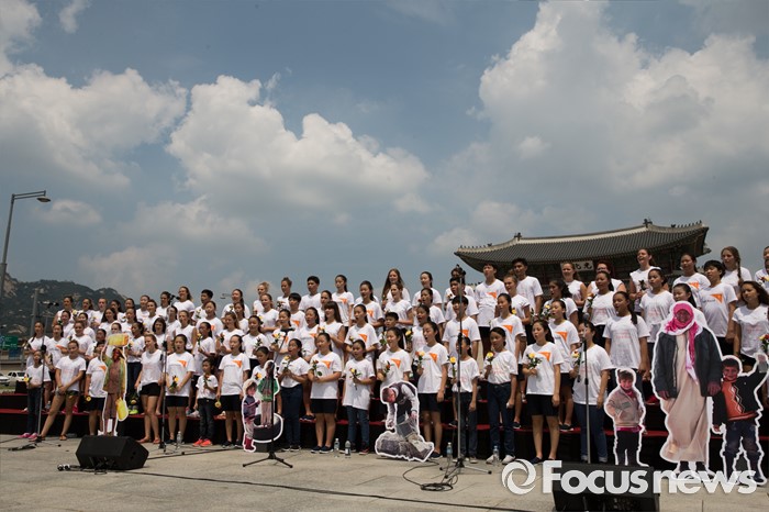 (서울=포커스뉴스) 8일 오전 서울 종로구 광화문광장에서 열린 '월드비전 2016세계어린이합창제' 런치콘서트에서 헝가리, 필리핀 어린이 합창단과 한국 월드비전 합창단이 노래를 부르고 있다. 올해로 6회를 맞은 '월드비전 2016 세계어린이합창제'는 'Song of Peace-평화의 노래'라는 주제로 8월 6일부터 11일까지 예술의 전당에서 열린다.