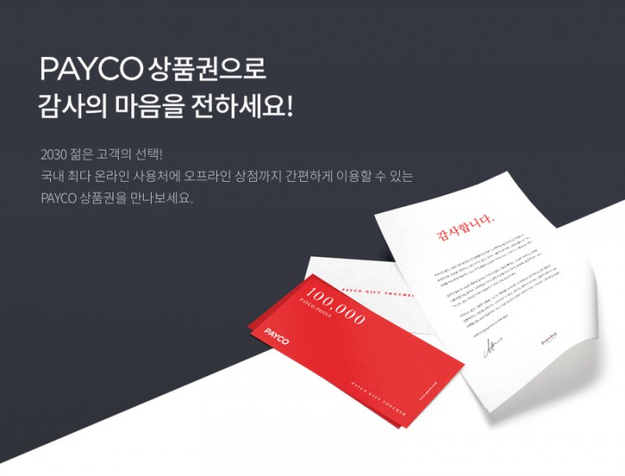 상품권은 지류와 디지털 두 가지로 마련됐다. 지류 상품권의 경우, 페이코 포인트 5000원, 1만원, 3만원, 5만원, 10만원 등 5가지 권종으로 제공하며, 디지털 상품권은 기업 고객 니즈에 따라 자유롭게 금액을 설정할 수 있다.