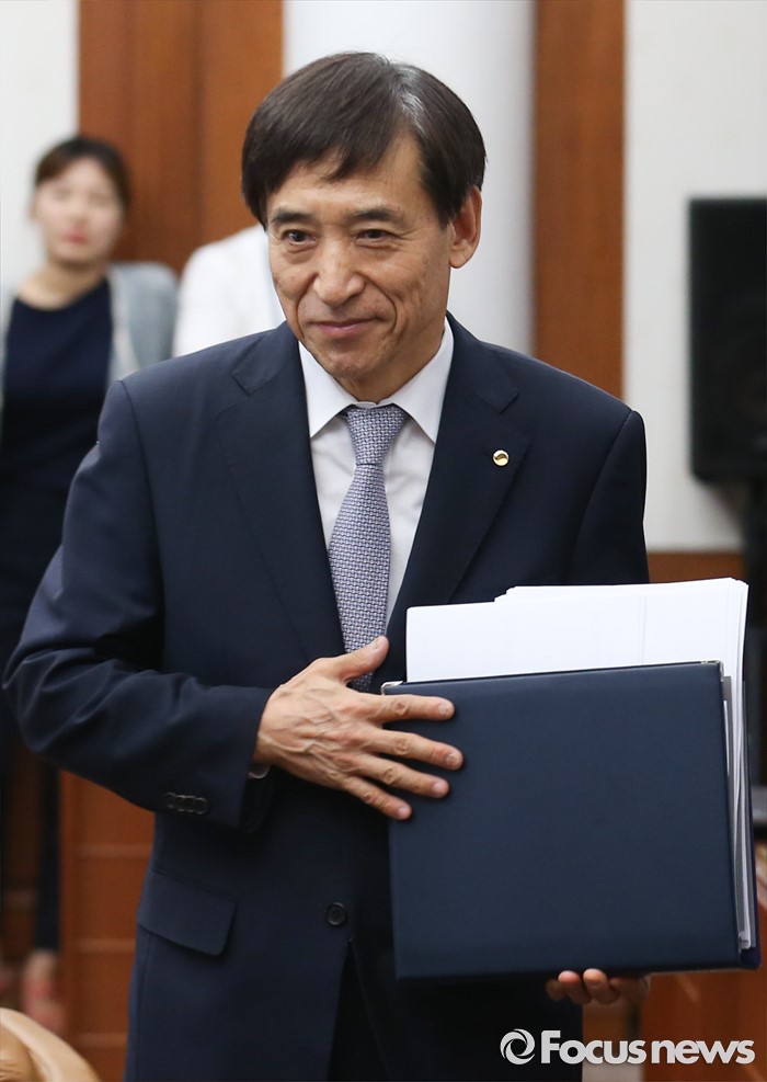 (서울=포커스뉴스) 이주열 한국은행 총재가 11일 오전 서울 중구 한국은행에서 열린 제15차 금융통화위원회에 참석하고 있다.
