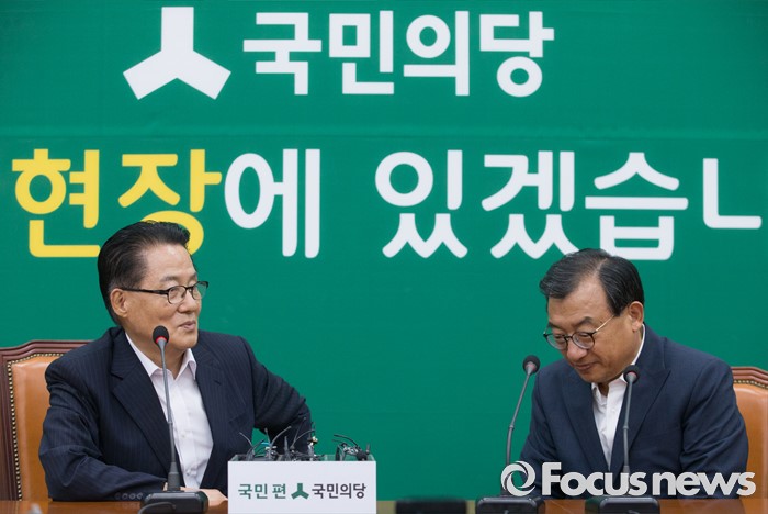 (서울=포커스뉴스) 11일 오후 서울 여의도 국회에서 박지원(왼쪽) 국민의당 비상대책위원장이 이정현 새누리당 대표와 면담을 하고 있다.